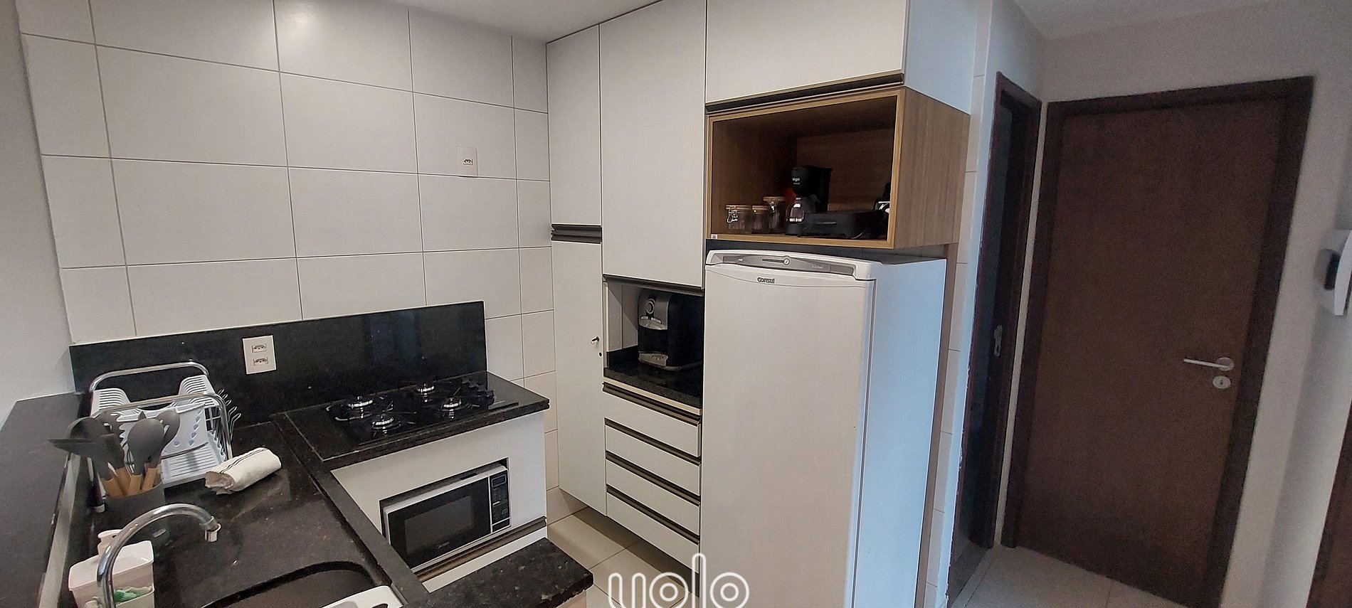 - Cozinha equipada com utensílios, micro-ondas, cafeteira, liquidificador, sanduicheira;
