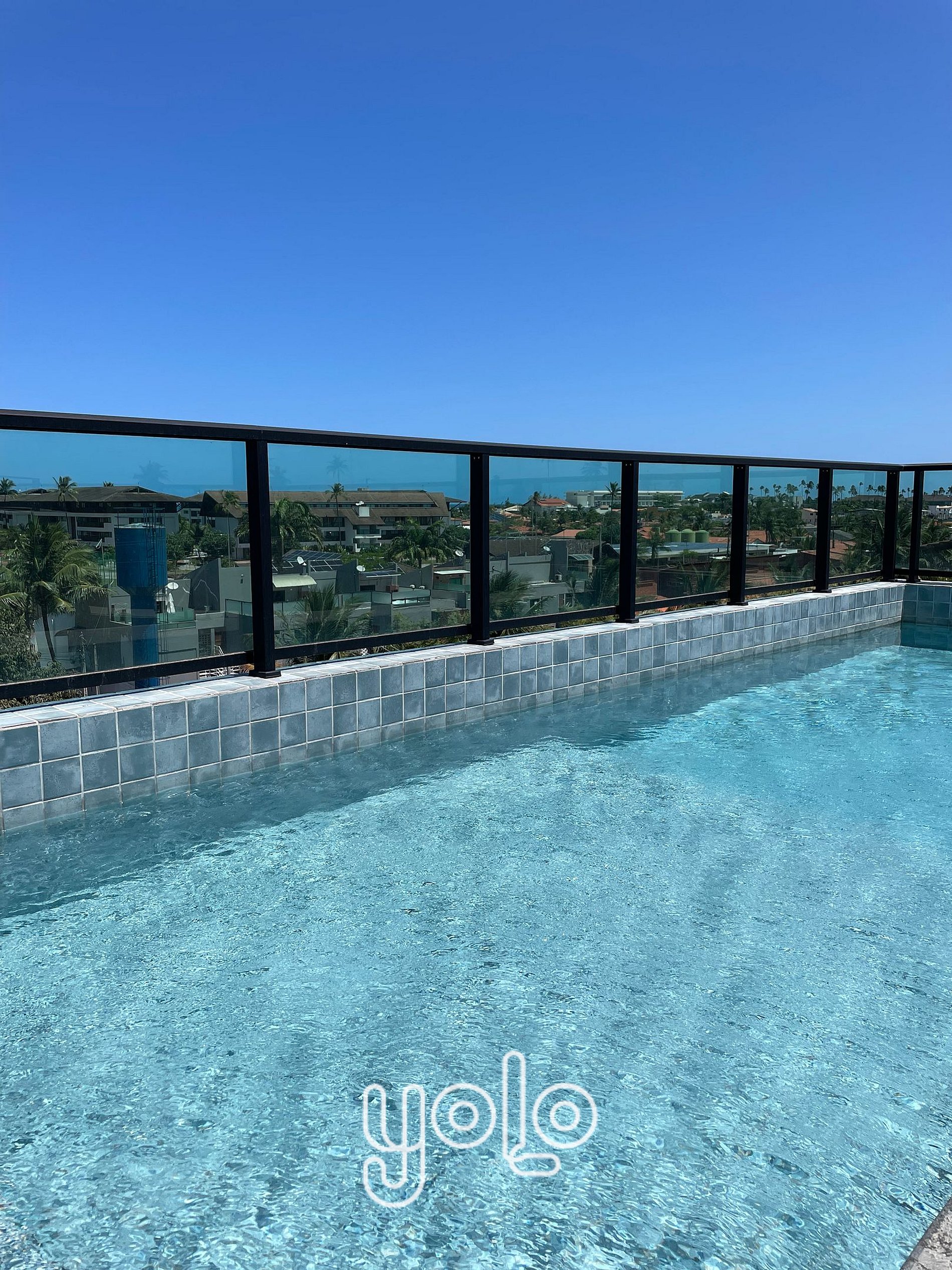 Piscina na cobertura com vista para o mar;